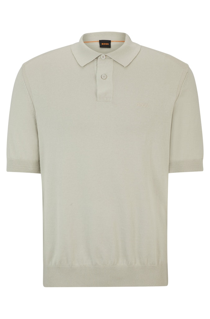 Fijn gebreide polo van Boss Orange met korte mouwen, polokraag voorzien van korte knoopsluiting, geborduurd logo op de linkerborst en ribgebreide boorden.