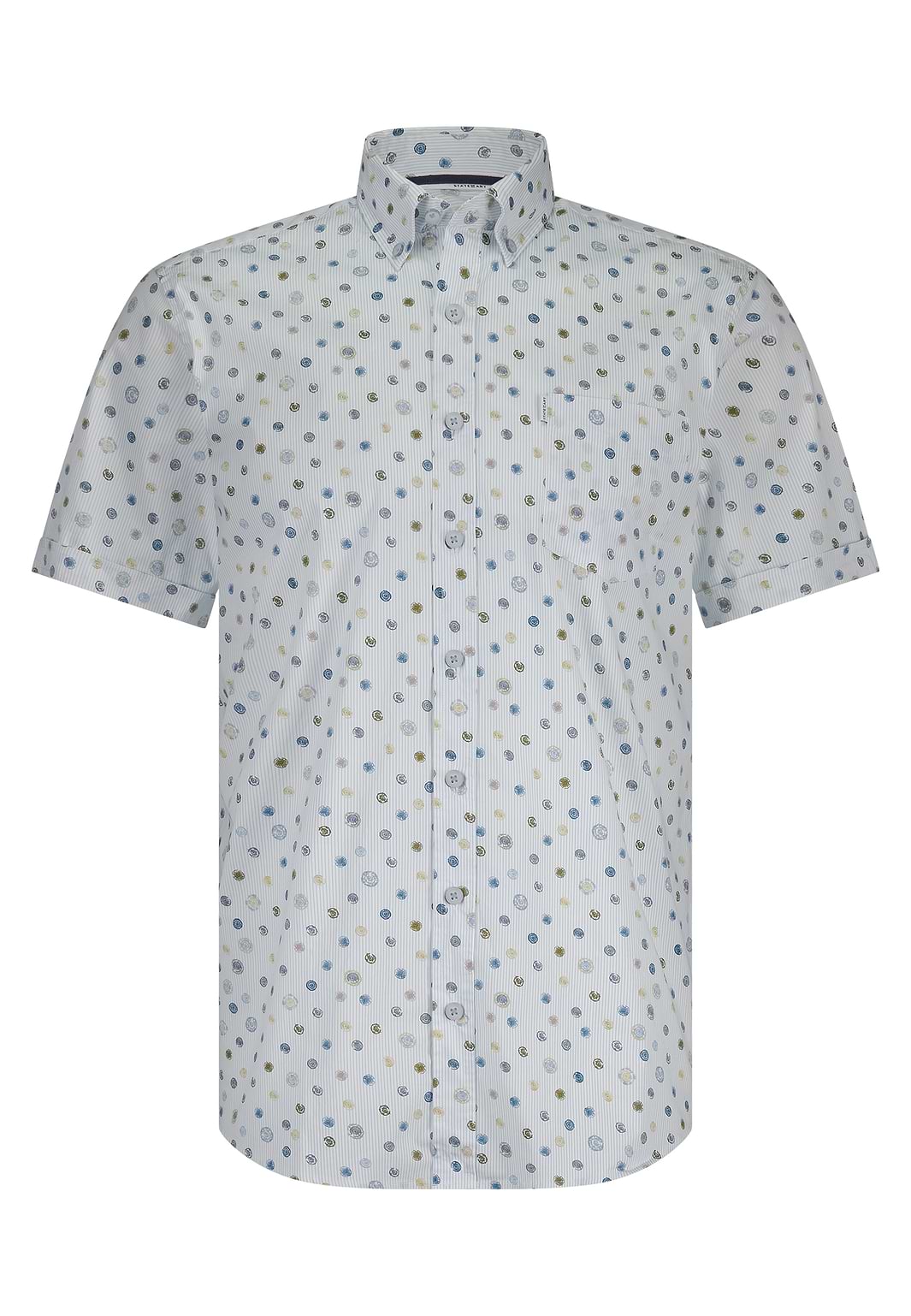 Overhemd van State of Art in poplinstof met een speelse all-over dessin, korte mouwen, button-down kraag en opgestikte borstzak.