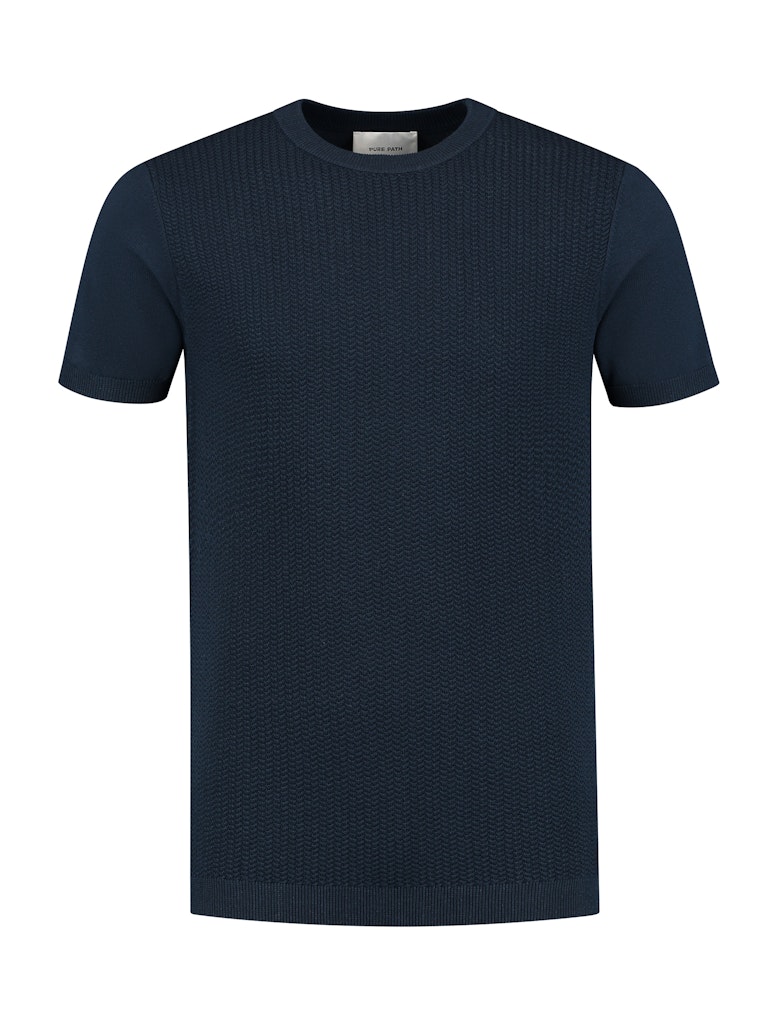 Gebreid shirt van Pure Path met korte mouwen, ronde hals en ribgebreide boorden. Materiaal: Katoen 100%