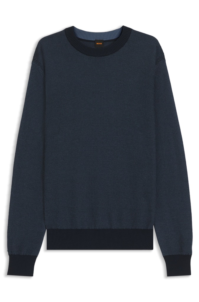 Trui van Boss Orange in een two-tone structuur met lange mouwen, ronde hals en iribgebreide boorden. Materiaal: Katoen 85%| kapok 15%