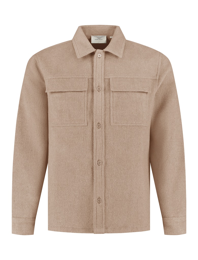 Flanel overshirt van Pure Path met lange mouwen, knoopsluiting, kraag en klepzakken op de borst.