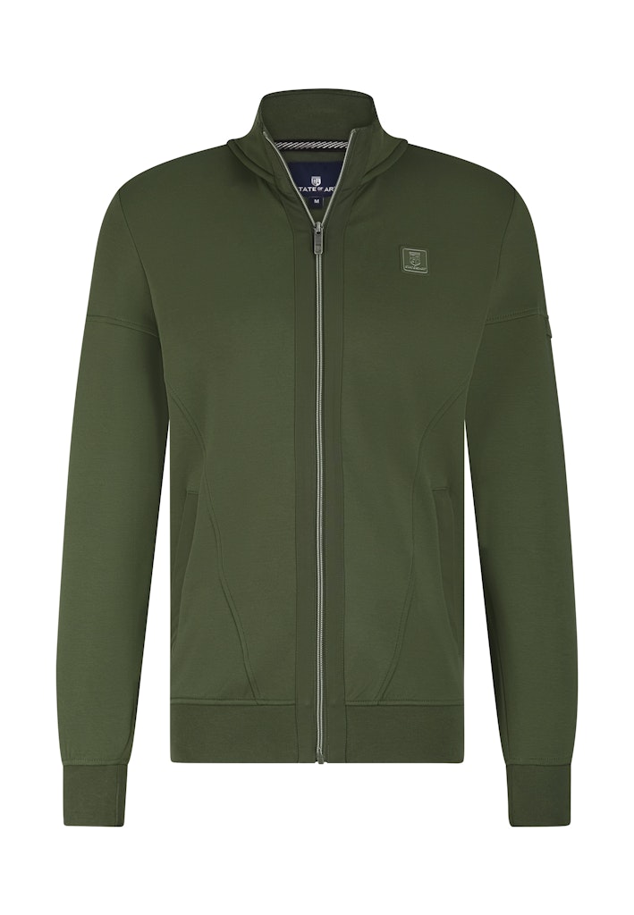 Sweatvest van State of Art met lange mouwen, ritssluiting, opstaande kraag, steekzakken, logobadge op de linkerborst en ribgebreide boorden.