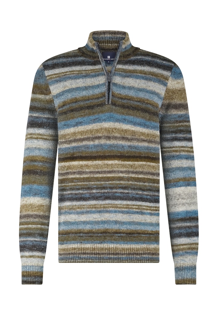 Gestreepte trui van State of Art met lange mouwen, opstaande kraag voorzien van korte ritssluiting en ribgebreide boorden.