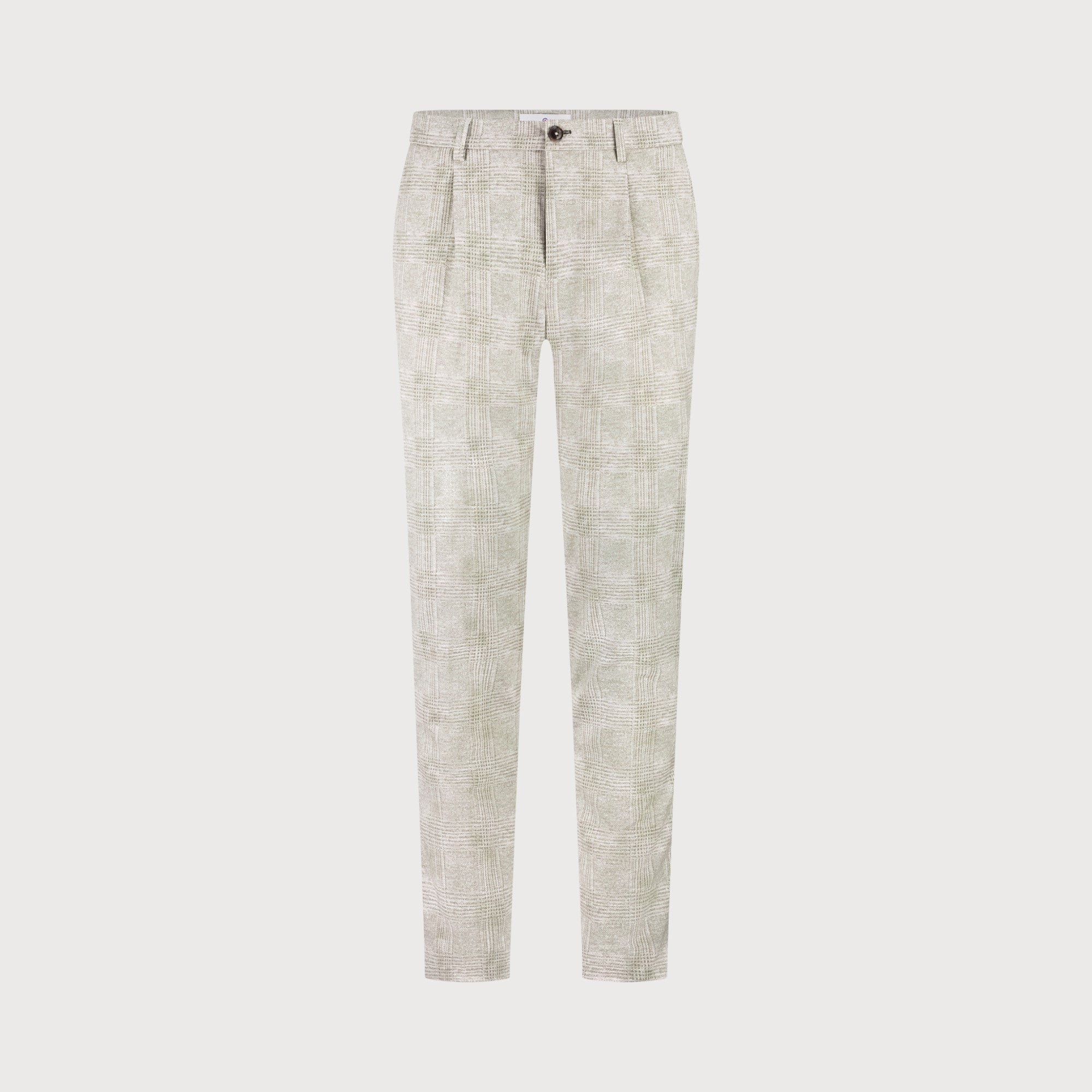 Chino van Blue Industry in een ruit dessin met een knoop- en ritssluiting, bandplooien, steekzakken en twee paspelzakken aan de achterzijde.