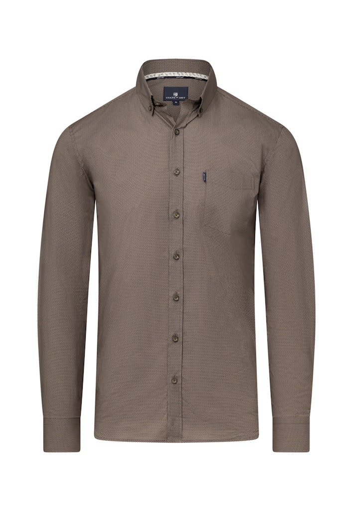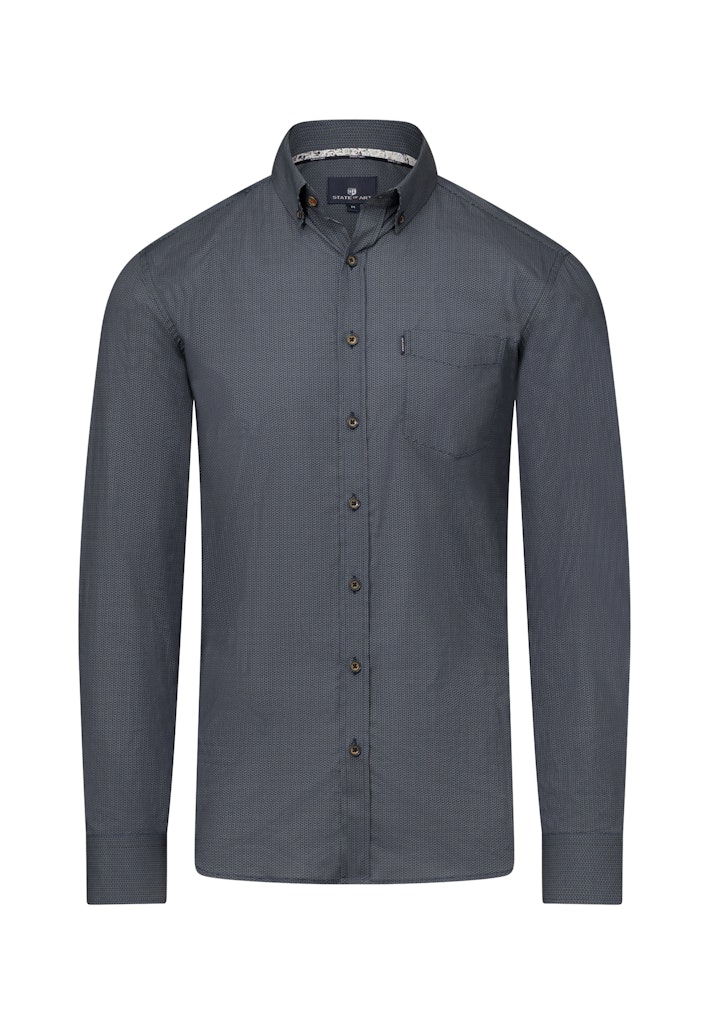 Regular fit overhemd van State of Art in een subtiel dessin met lange mouwen, button-down kraag, opgestikte borstzak en een knoopsluiting.