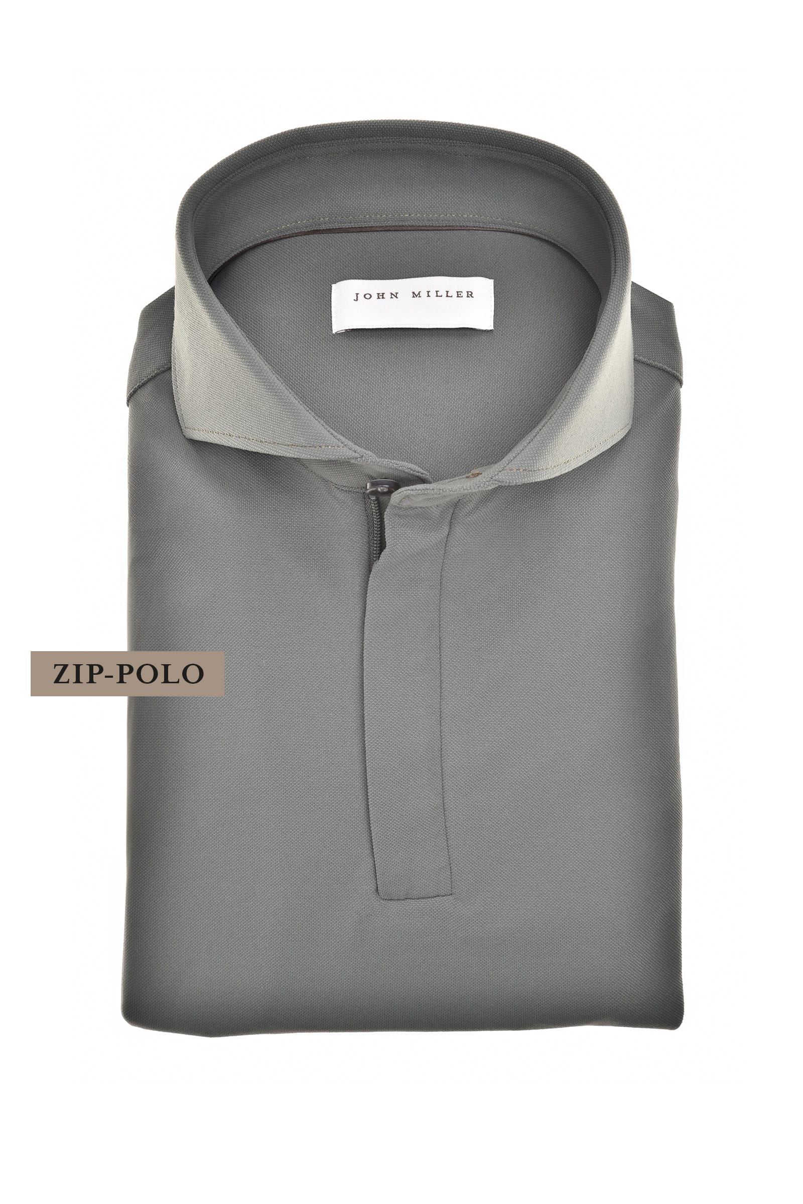 Polo van John Miller met lange mouwen en een cutaway kraag voorzien van een verborgen korte ritssluiting.