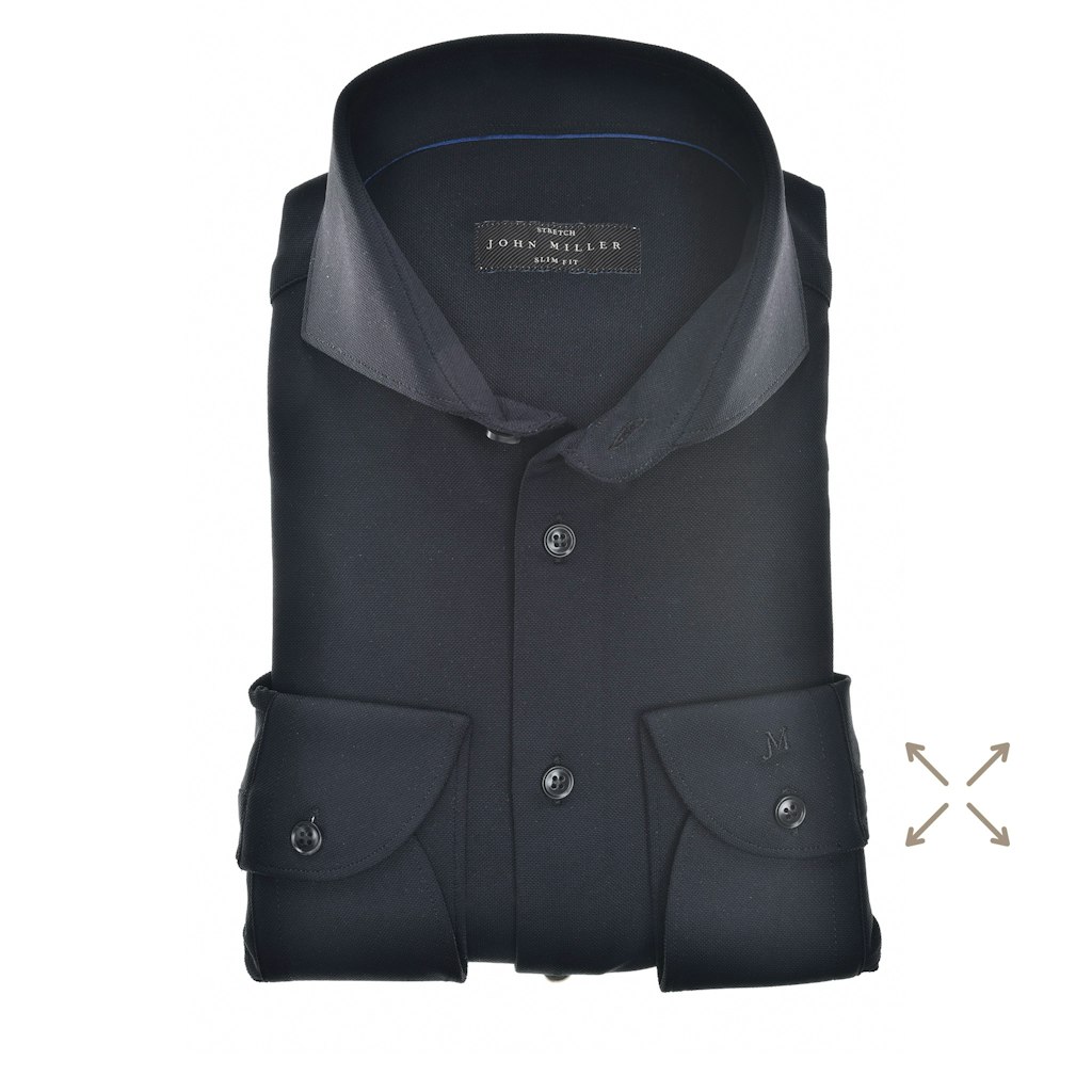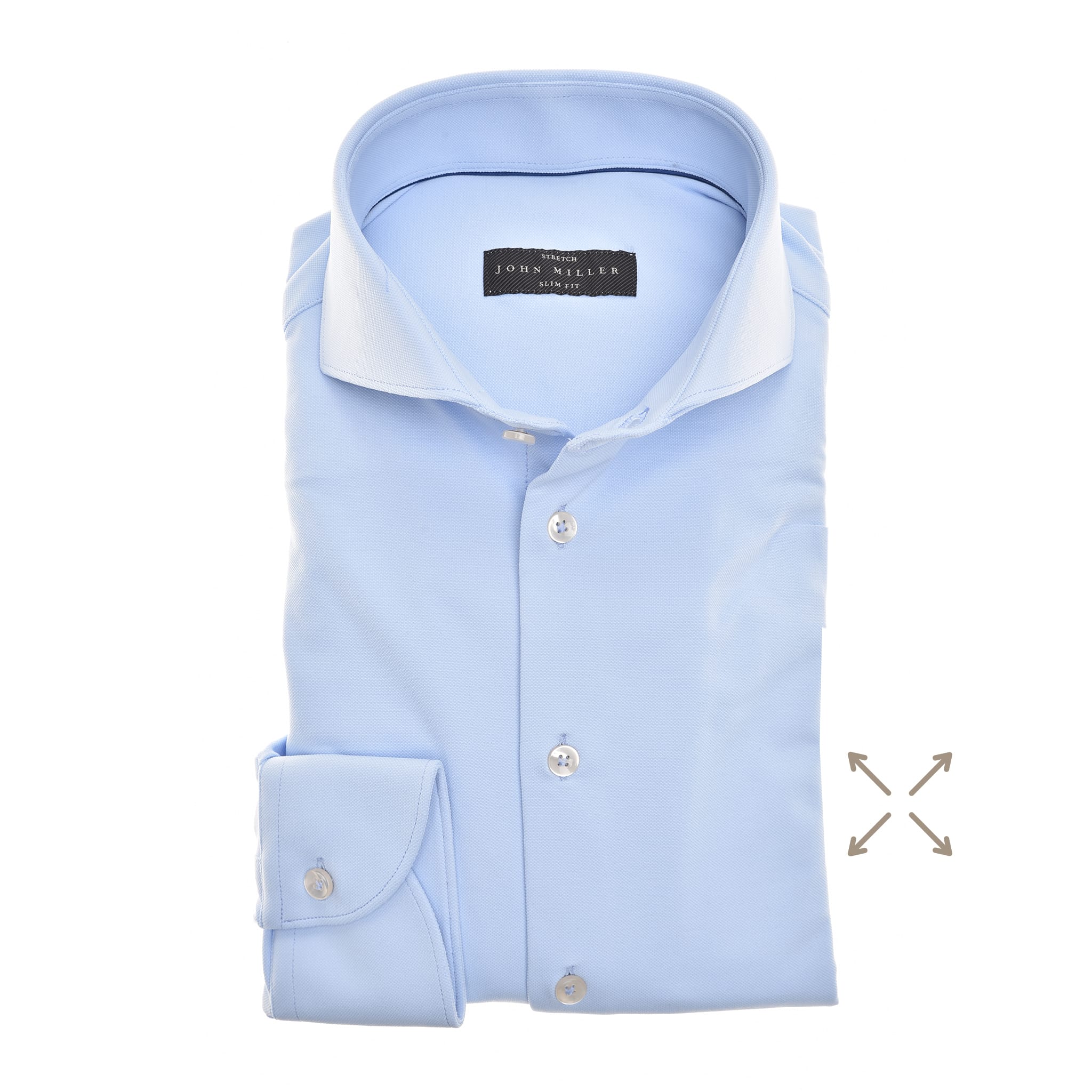 Slim fit superstretch overhemd van John Miller met lange mouwen, cutaway kraag en een knoopsluiting. Materiaal: Polyamide 89% elastan 11%