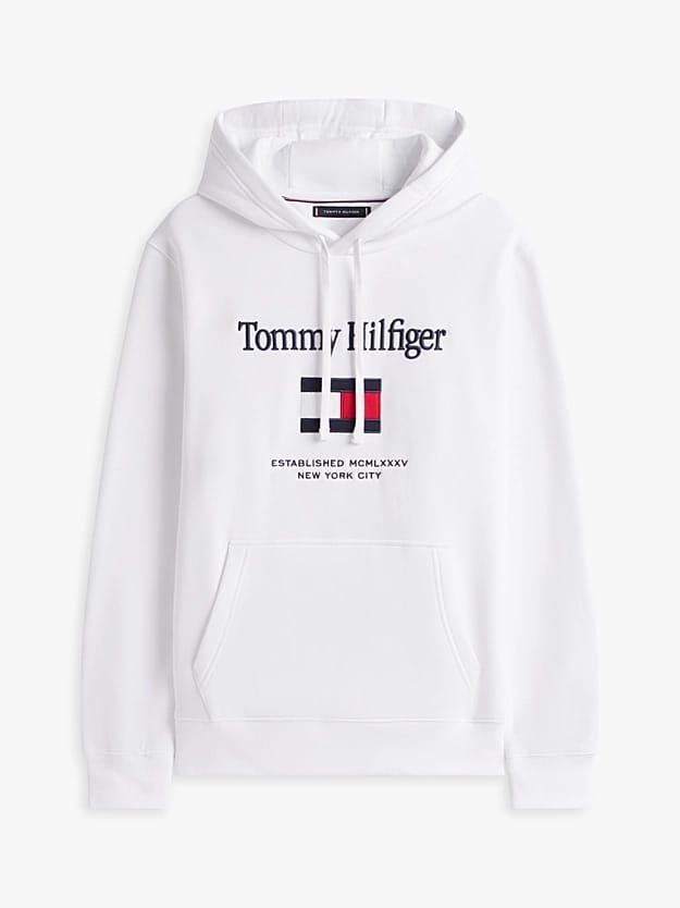 Hoodie van Tommy Hilfiger met lange mouwen, capuchon, buidelzak, grote geborduurde logoprint op de borst en ribgebreide boorden. Materiaal: Katoen 64%| polyester 36%