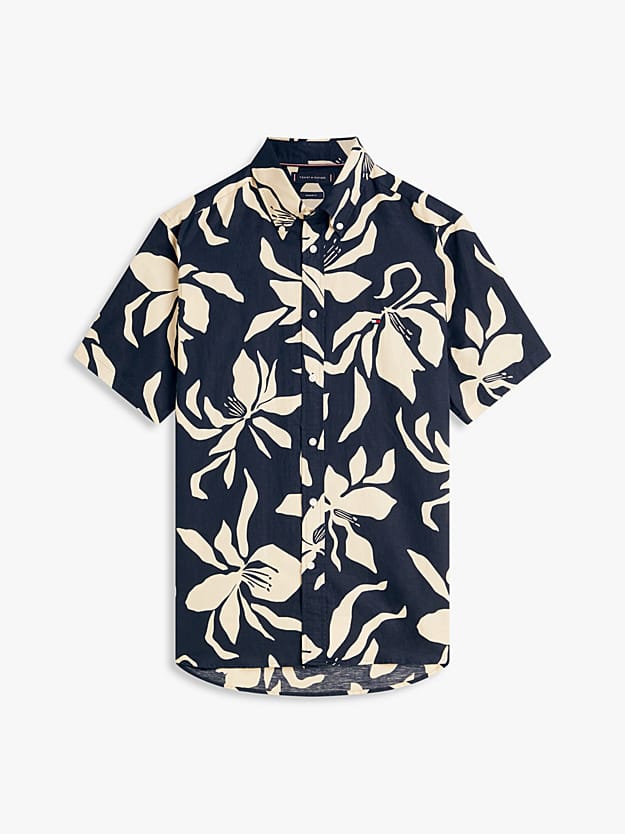 Overhemd van Tommy Hilfiger in een bloemen dessin met korte mouwen, button-down kraag, knoopsluiting en een geborduurd logo op de linkerborst.