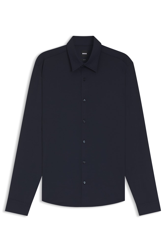 Slim fit overhemd van Boss Black in een jersey kwaliteit met lange mouwen, kent kraag en een knoopsluiting. Materiaal: Polyamide 81%| elastan 19%