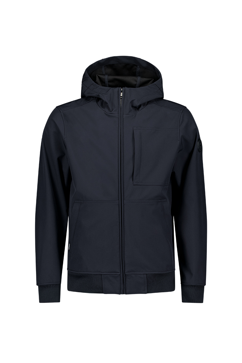 Softshell jacket van Airforce met een ritssluiting, opstaande kraag, capuchon, steekzakken, ritszak op de borst, logo label op de linkermouw en ribgebreide boorden.