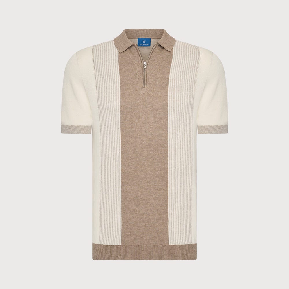 Polo van Blue Industry in een katoen- en modalmix met gestreepte details, korte mouwen, polokraag voorzien van ritssluiting en contrasterende afwerkingen.