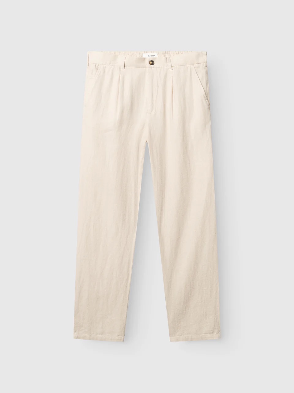 Linnen broek van Gabba met een knoop- en ritssluiting, steekzakken, twee paspelzakken en een elastische tailleband aan de achterzijde.