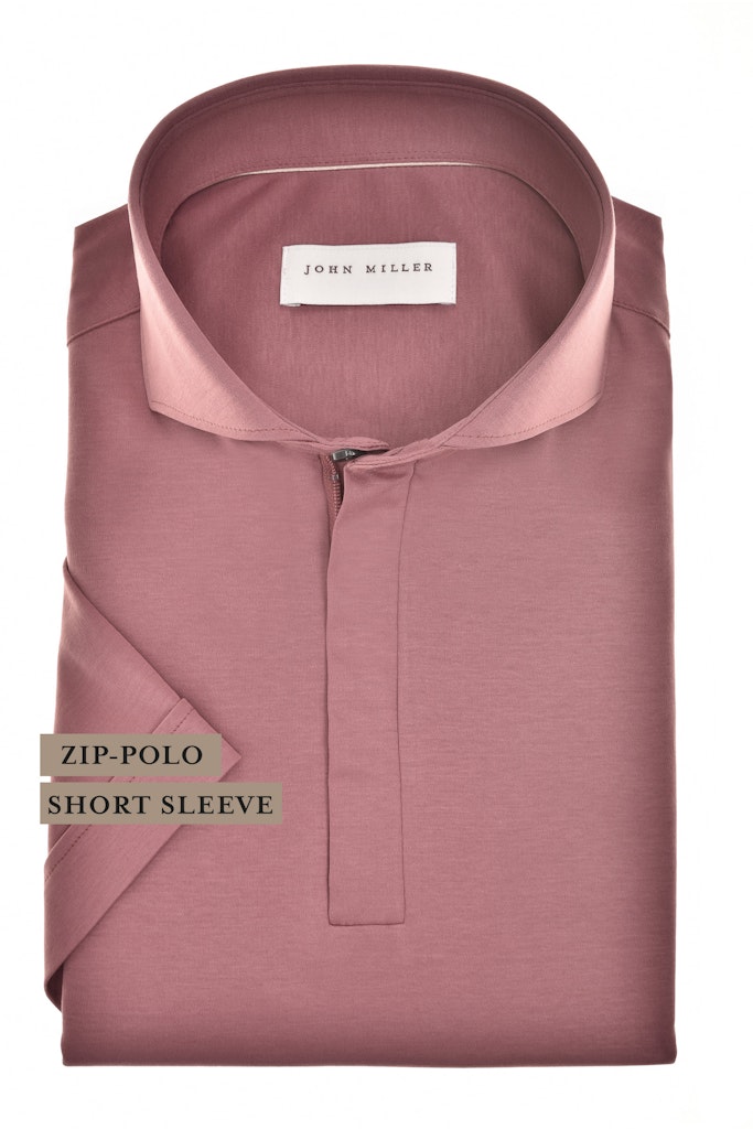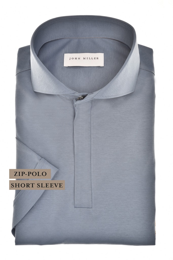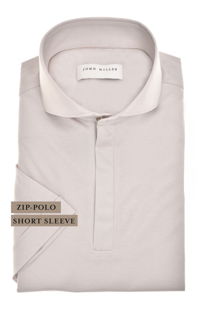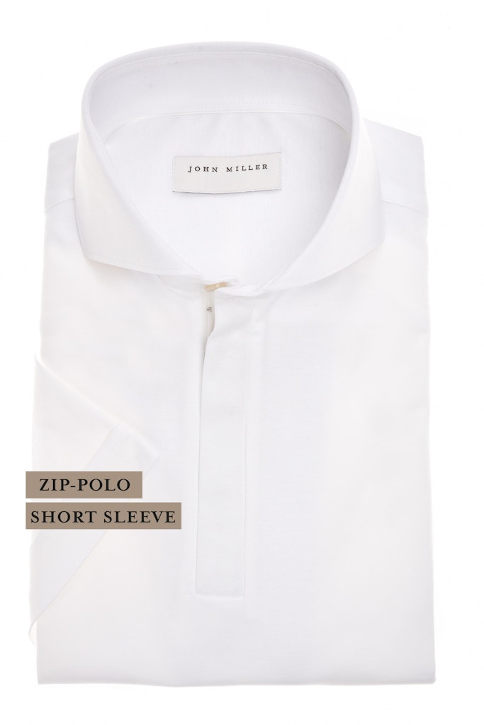 Poloshirt van John Miller met korte mouwen en een cataway kraag voorzien van korte ritssluiting. Materiaal: Katoen 100%