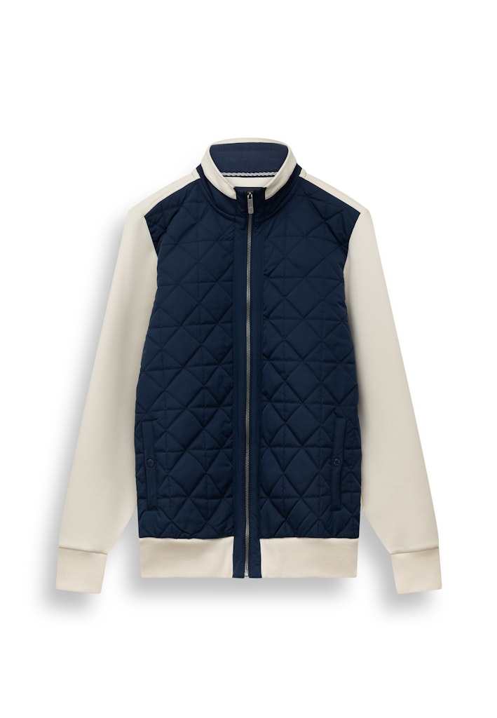 Sweat vest van State of Art in een materialen mix met een doorgestikte vooorzijde, lange mouwen, ritssluiting, opstaande kraag, steekzakken en ribgebreide boorden.