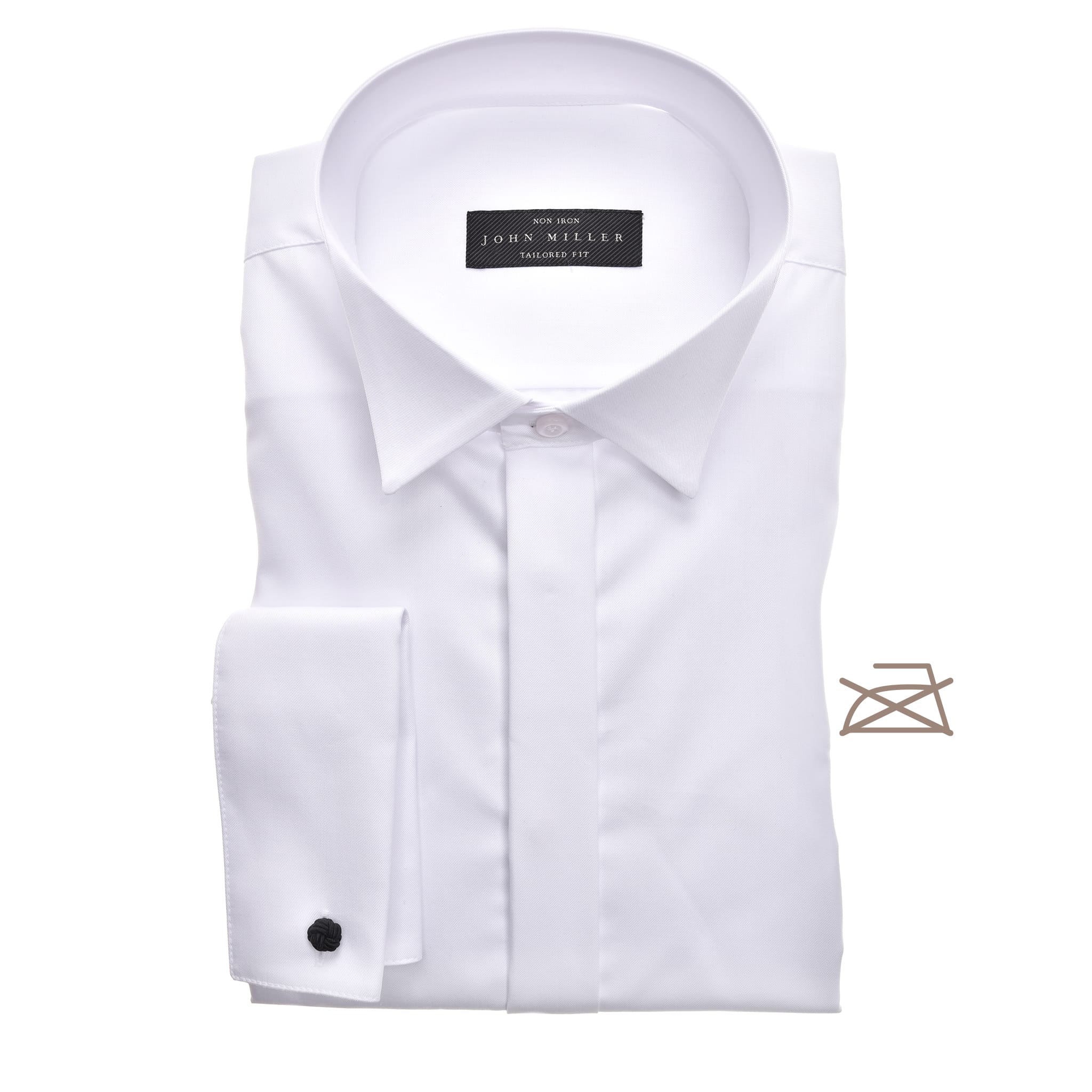 Tailored fit smoking overhemd van John Miller met lange mouwen voorzien van dubbel manchet, kraag en een verborgen knoopsluiting.