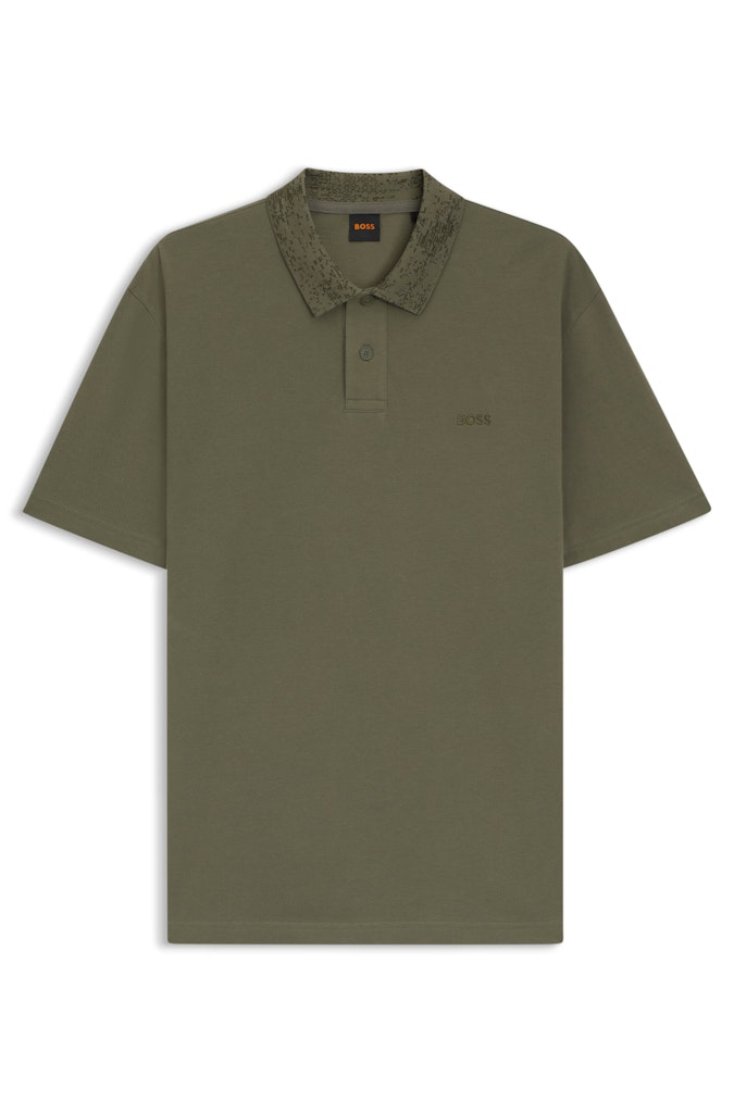 Polo van Boss Orange met korte mouwen, bewerkte polokraag voorzien van korte knoopsluiting en een geborduurd logo op de linkerborst.