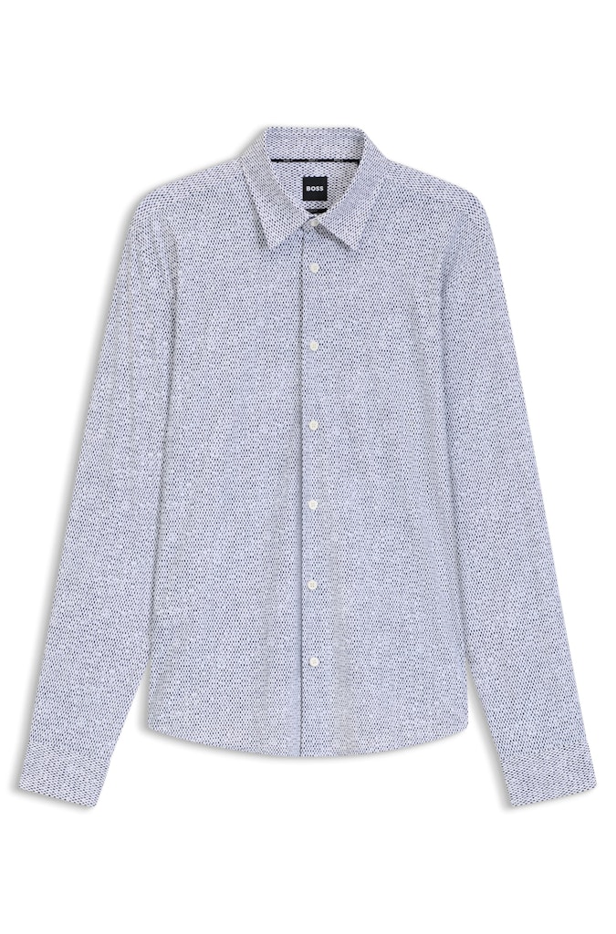 Slim fit overhemd van Boss Black in een subtiele print met lange mouwen, kraag en een knoopsluiting. Materiaal: Polyamide 76%| elastan 24%
