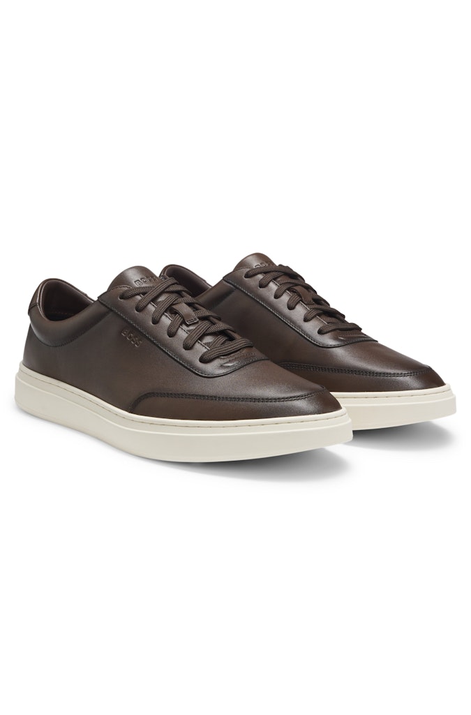 Leren sneaker van Boss Black met een vetersluiting en een contrasterende rubberen zool. Materiaal: Leer 100%