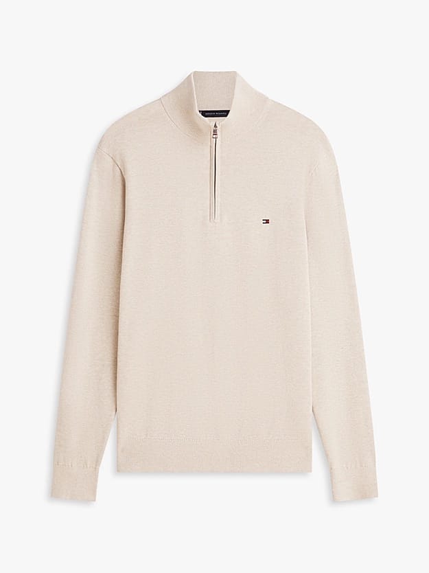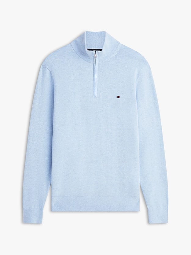 Trui van Tommy Hilfiger met lange mouwen, opstaande kraag voorzien van korte ritssluiting, geborduurd logo op de linkerborst en ribgebreide boorden.