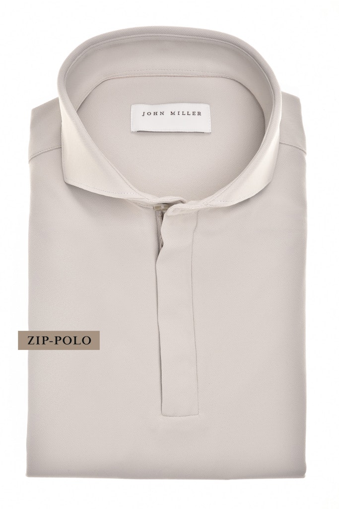 Slim fit poloshirt van John Miller met lange mouwen en een cutaway kraag voorzien van korte ritssluiting.