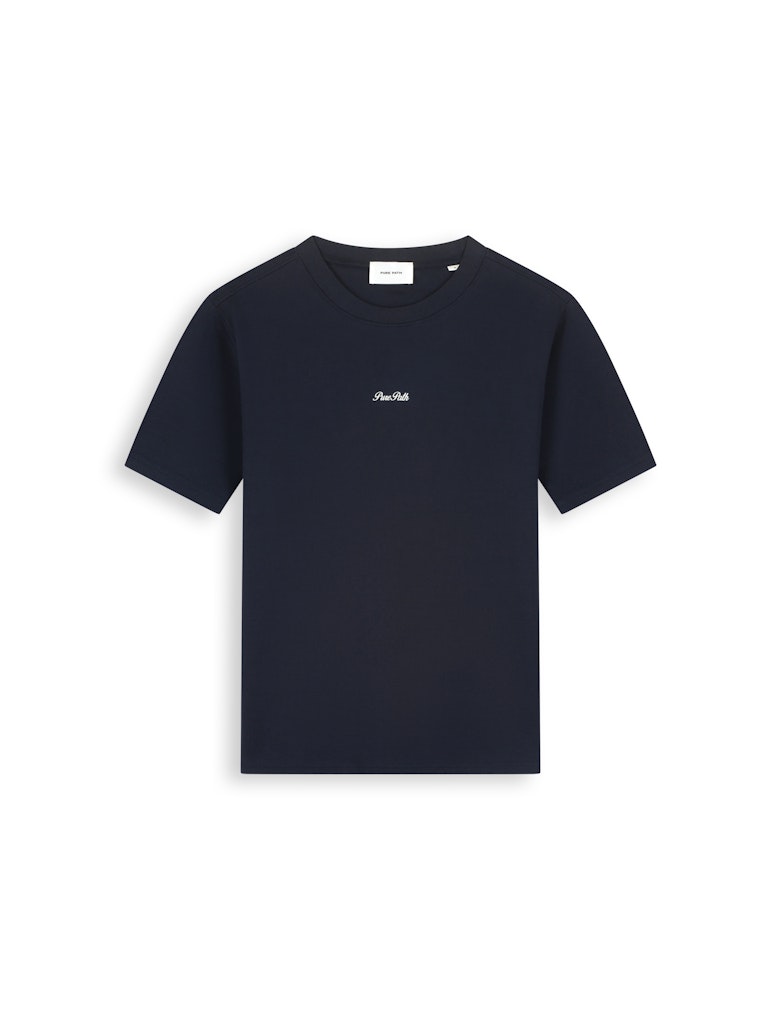 T-shirt van Pure Path met korte mouwen, ronde hals, klein logo aan de voorzijde en een grote Riva-print aan de achterzijde. Materiaal: Katoen 100%
