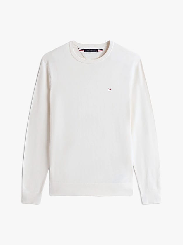 Fijn gebreide trui van Tommy Hilfiger met lange mouwen, ronde hals, geborduurd logo op de linkerborst en ribgebreide boorden.