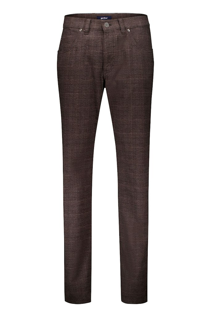 5-pocket geruite broek van Gardeur met een knoop- en ritssluiting. Materiaal: Katoen 56%| polyester 28%| viscose 15%| elastan 1%